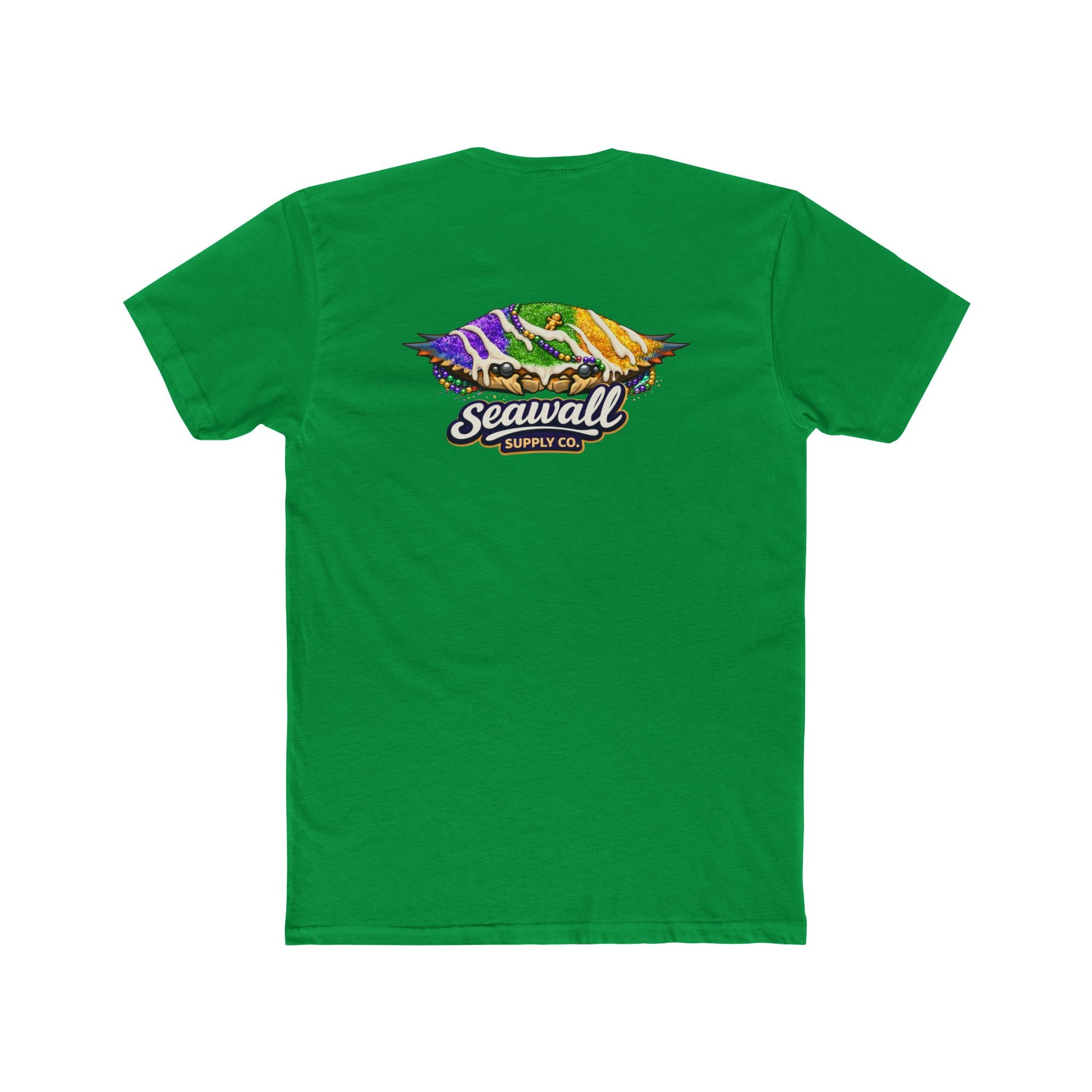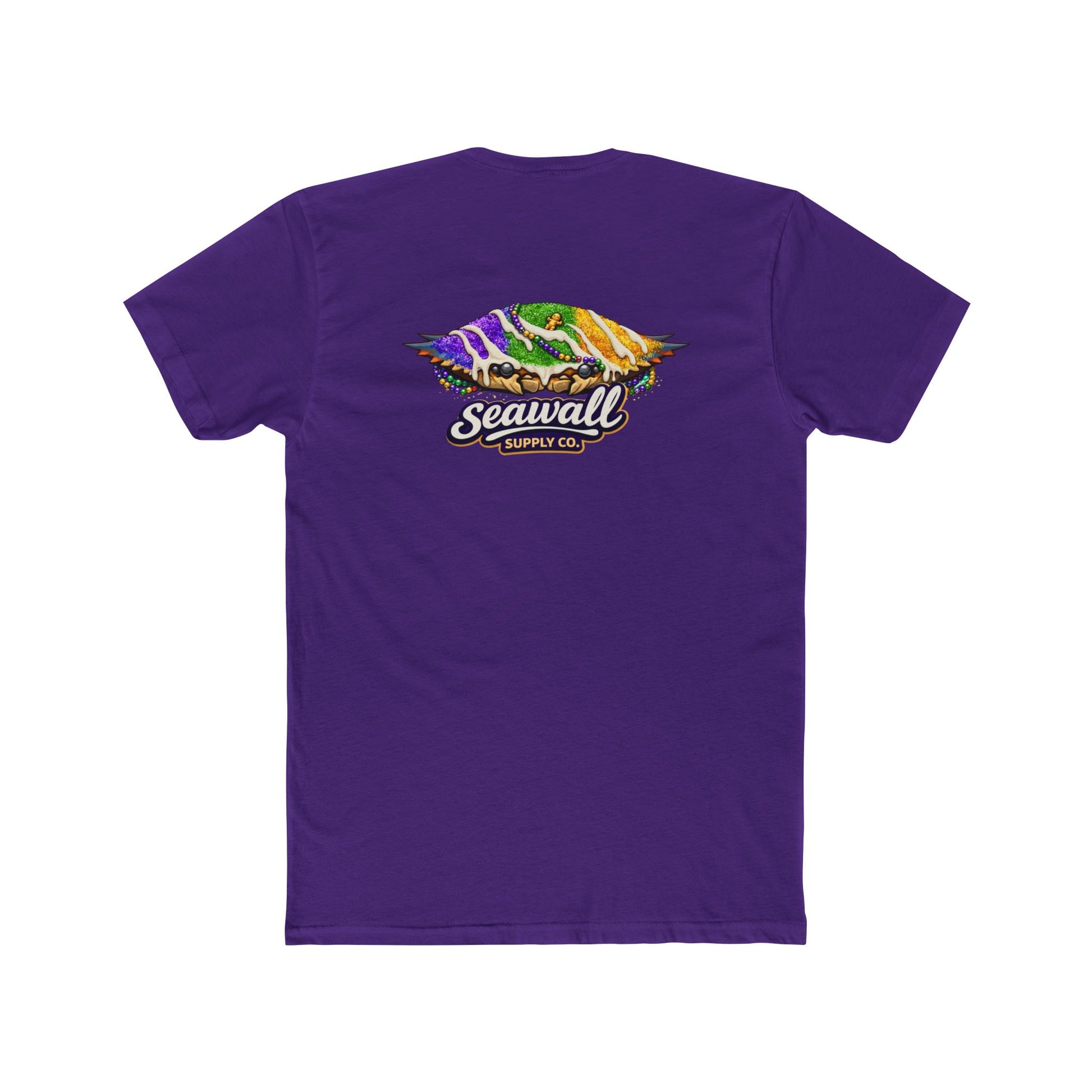 A tasty twist on southern street culture, the Crab Cake Tee combines the flavor of a classic crab cake with the festive spirit of a king cake. Celebrate New Orleans style with this fun, Mardi Gras-inspired design!